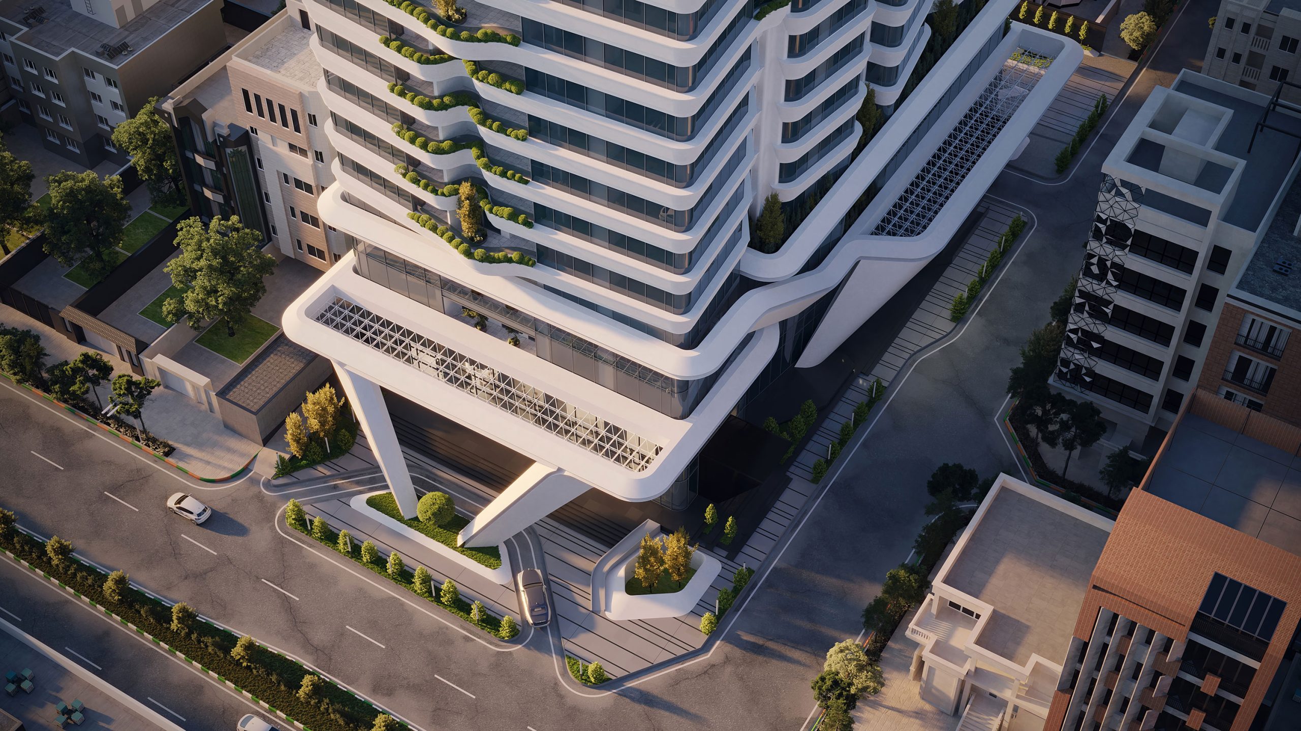 اما شاید مهم‌ترین ویژگی در این میان، پیوند میان معماری و انسان است. در طراحی برج‌های باران، به جای نمایش مقیاس، بر مقیاس انسانی تاکید شده است. فضاها طوری چیده شده‌اند که حرکت، دید و تعامل طبیعی باشند؛ نه تحمیلی. فضاهای عمومی با نور طبیعی و مصالح گرم احاطه شده‌اند تا احساس تعلق ایجاد کنند، و مسیرهای حرکتی، آرامش بصری را در هر گام حفظ کنند. این همان چیزی است که در فلسفۀ معماری روایی (Narrative Architecture) معنا پیدا می‌کند؛ فضا داستان می‌گوید، بی‌آن‌که کلمه‌ای نوشته باشد.